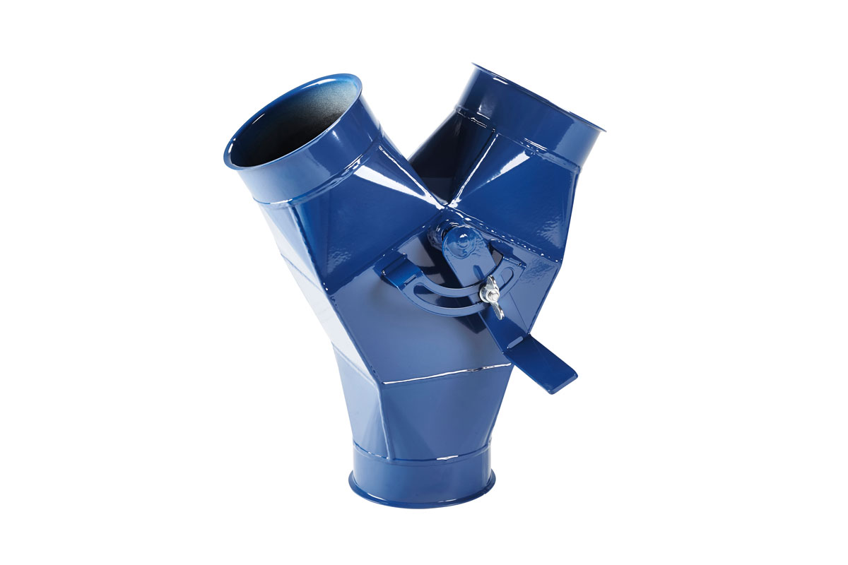 Hitsatulla jakopellillä jakaa siirtolinja kahteen eri linjaan. Hitsattu jakopelti käy myös pudotussuppiloon jakajaksi.