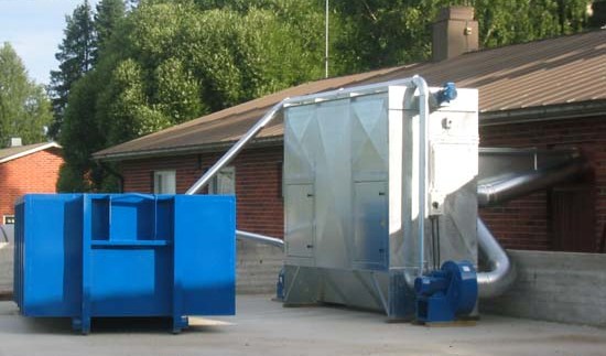 L-suodatin imee siirtopuhaltimella suodatetun materiaalin suodattimen pohjalta siirtolinjastoon. Puhaltimen suodatuspussimateriaali valitaan suodatettavan pölyn mukaan.