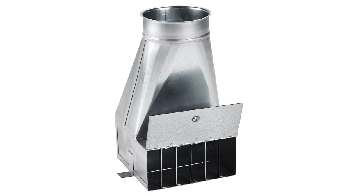 Suppilon lisävarusteena kiinteä ritillä ja  sulkuluukulla